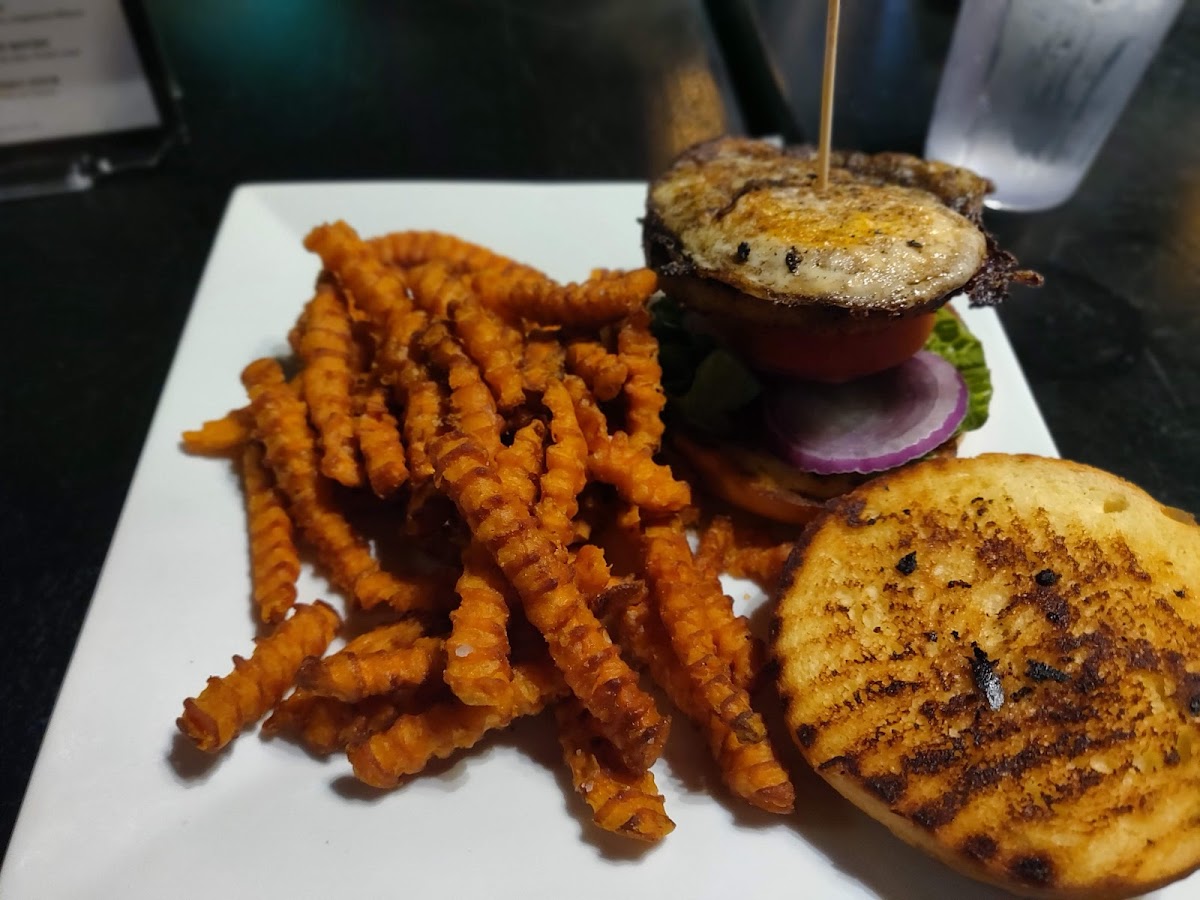 This place has a great staff. A very friendly staff, even when the host was getting our table together. Two more other employees came over and asked us. Was we being helped. The food was delicious. As you can see I had the salmon family with sweet potato fries, Ragin Cajun pasta. The pickles. I wish they was a little bit more battered. We even spoke with the owner. The food came out promptly. We had a cheeseburger with bacon on it that was also delicious. This is a place that you should try. They also do have drink specials every day of the week
